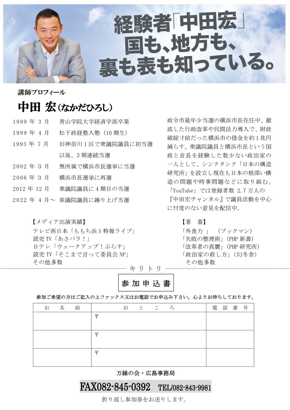 お付き合いも20年を超えている中田宏参議院議員の後援会のご案内です。
