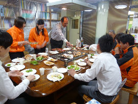 そして、六時からは、みんなで囲炉裏テーブルを囲い食事会。