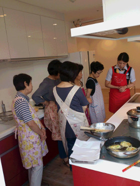 1FでIHクッキングヒーターを使っての料理教室の実体験へ。