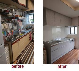 キッチン扉も明るい色を選定されて圧迫感なくすっきりとしたキッチンになりました!