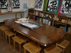 実は、マルコシ2階「お客様ルーム」にある「欅の囲炉裏テーブルとイスのセット」も秋山木工さんの家具なんですよ!